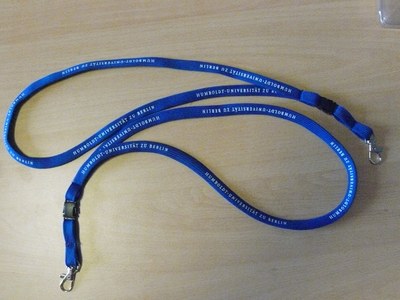 blau mit Schriftzug "Humboldt-Universit?t zu Berlin". Material: Gewebeband